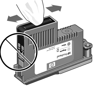 Gently wipe the printhead contacts with a dry, clean, soft,
