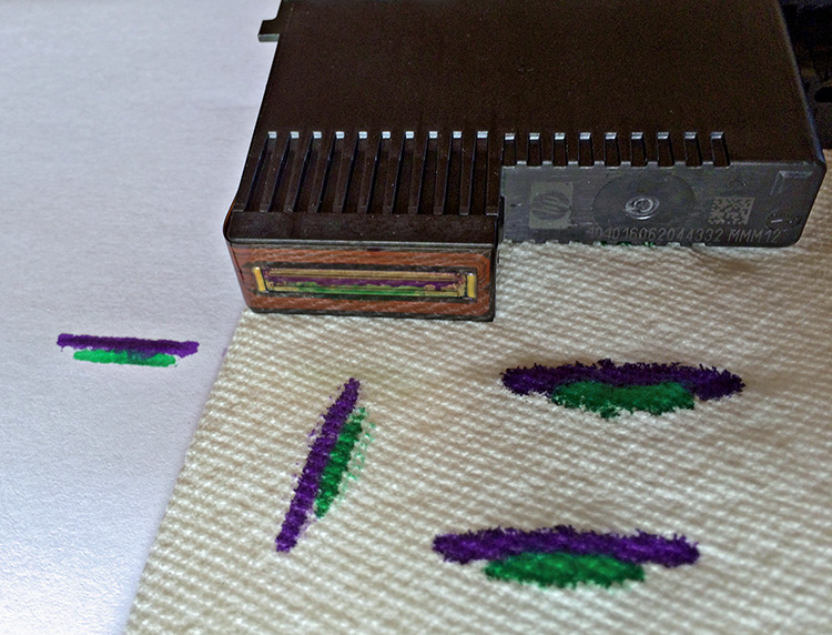 After 15 or 30 minutes, dry off the print head and "stamp" a