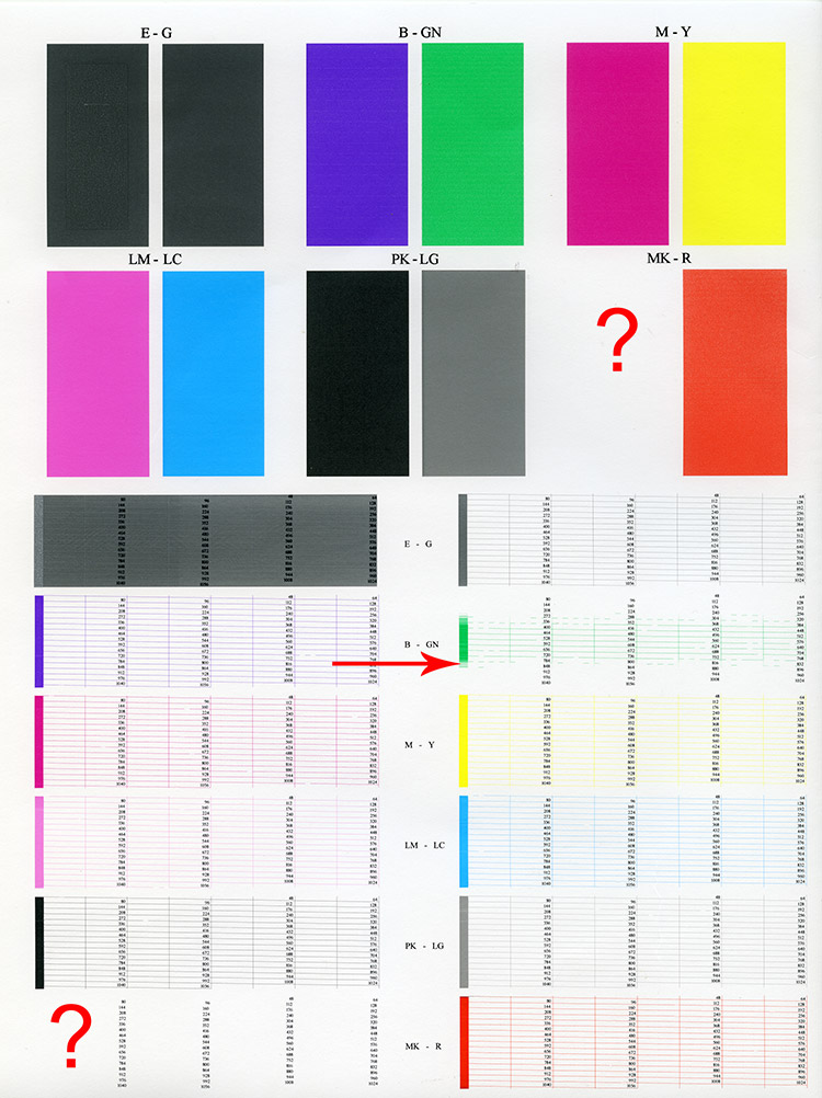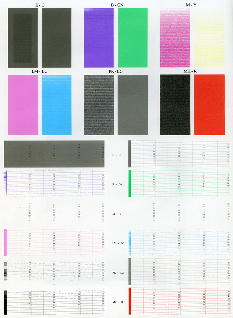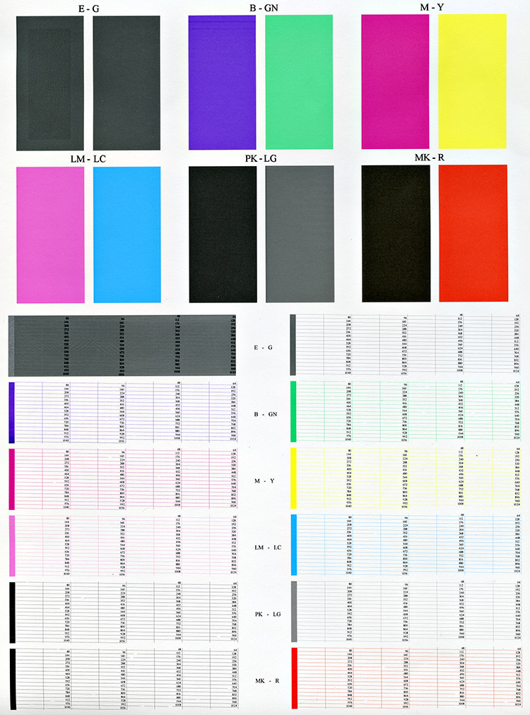 The diagnostics test prints out every single nozzle of each