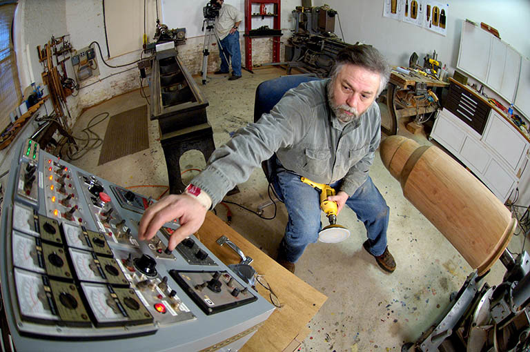 Mark Lindquist working with his robotic control panel in studio while