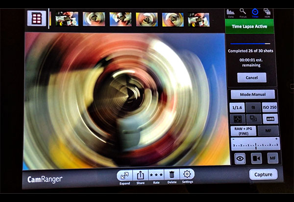 a remote camera control system called CamRanger. John has an
