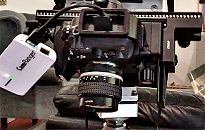 CamRanger's receiver mounts to the camera via a hotshoe mount I devised.